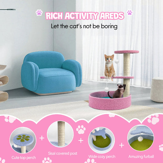 Cat Scratching Post Small Cat Tree Tower with Cozy Perch, Fleece Lounge Bed with Hanging Ball, for Indoor Cat Kitten,18.5 Inch,Pink