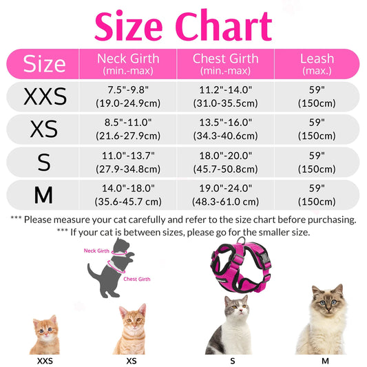 Cat Harness and Leash for Walking, Escape Proof Soft Adjustable Vest Harnesses for Cats, Easy Control Breathable Reflective Strips Jacket, Rose Red