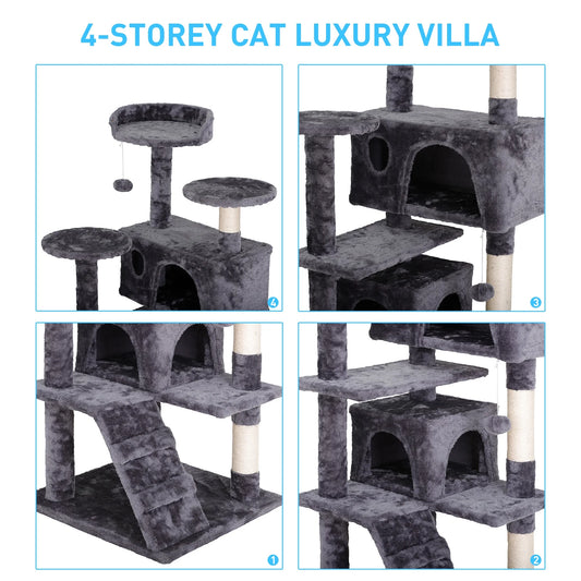 55''H Multi-Level Soft Cat Tree Condo Cat Tower W/Scratching Posts & Top Perch, Gray